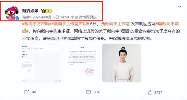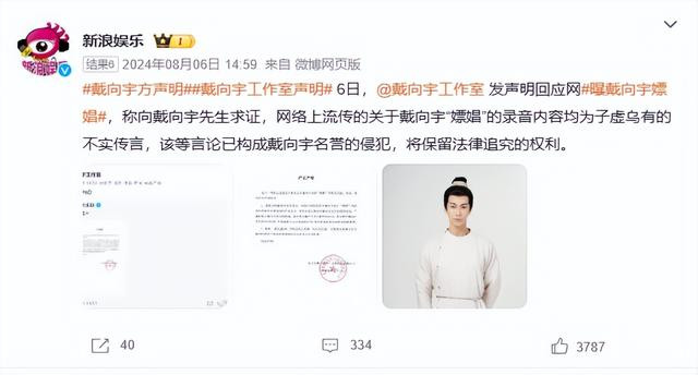不过戴向宇方很快就发声明回应,“嫖娼”是子虚乌有的传言。